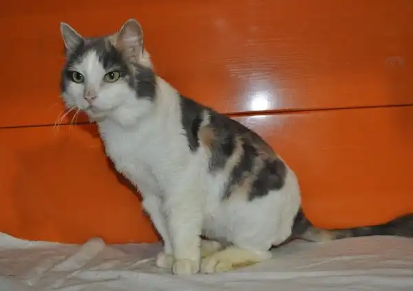 Даша - трехцветная пушистая зеленоглазая красавица. Правда, на фото не видно ее пушистости, Дашенька была подстрижена из-за плохого состояния шерсти, она только начинает обрастать новой плюшевой шерсткой. Кошке примерно 3 года, она довольно долго прожила в приюте в НМ, от нее отказались хозяева. Очень ласковая, контактная кошка, Любит людей и внимание к себе. Хорошо уживается с другими кошачьими. Крупненькая для кошечки и очень приятная в общении. Даша пользуется лотком, питается готовыми кормами. Стерилизована.