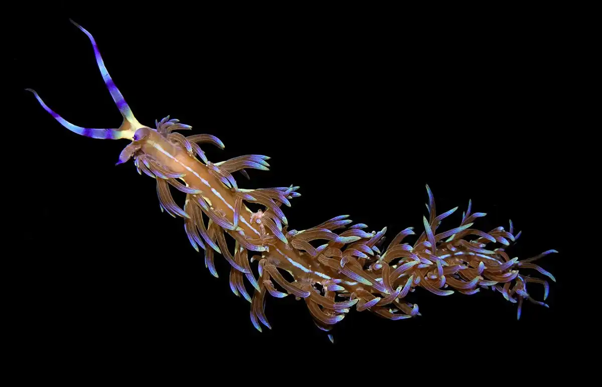 В интернете часто этого моллюска называют Голубым драконом, но на самом деле голубой дракон - Pteraeolidia ianthina — выглядит вот так: