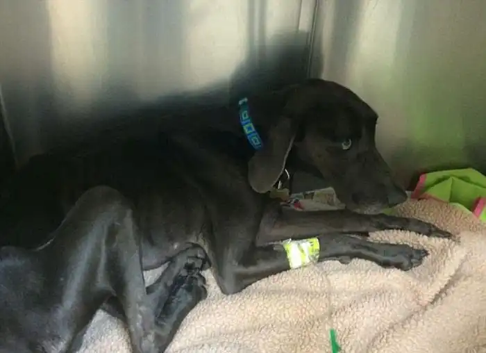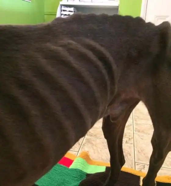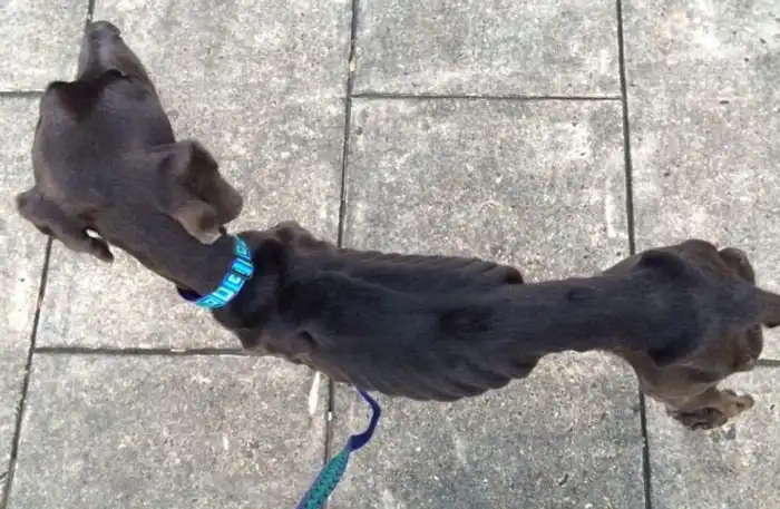 Этого сильно истощенного пса по кличке Алекс нашли на улицах Нового Орлеана, штат Луизиана, и направили в центр контроля над животными. Далее за дело взялся фонд Southern Animal, который спас жизнь собаке.