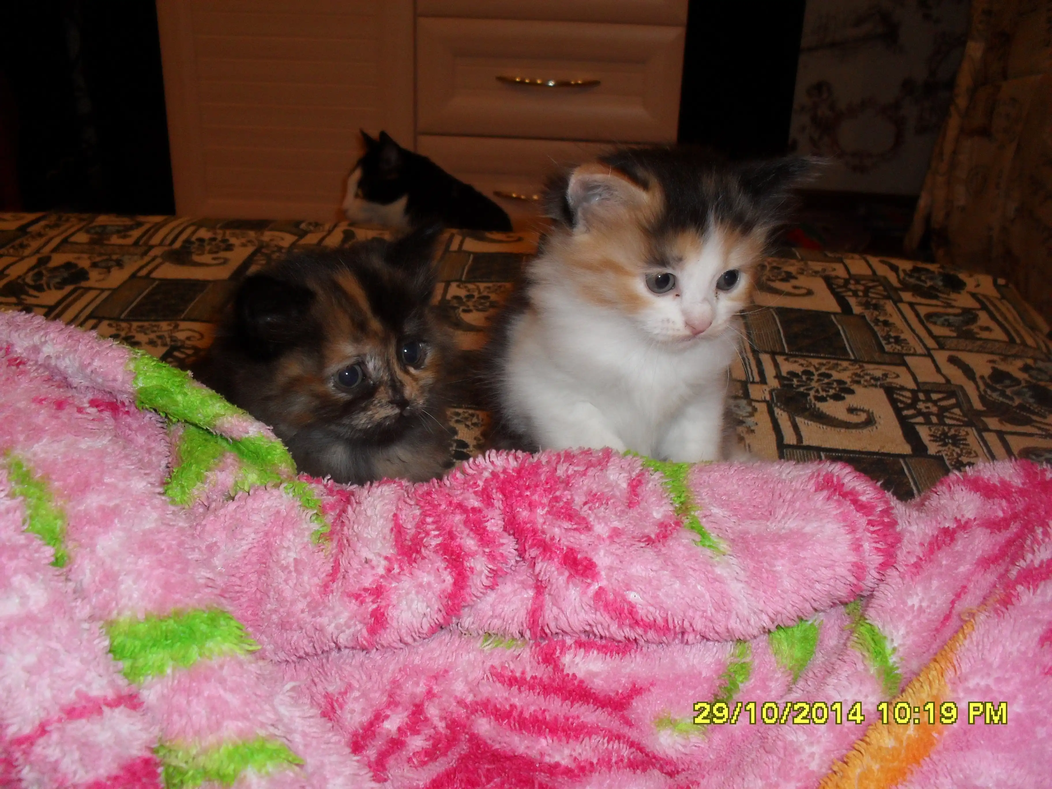 Отдам котят в добрые, заботливые руки. Девочки. Пушистые, игривые комочки). 26.10 исполнился месяц. Кушают все подряд (молоко, вареное мясо, печень и т.д), к лотку приучены.