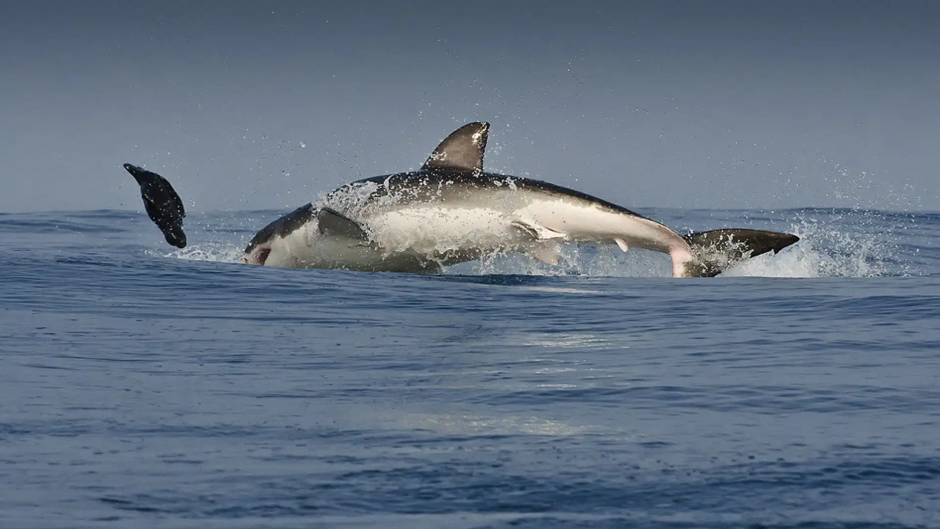Любопытна тактика охоты большой белой акулы на тюленей. Вначале она скользит в толще воды по горизонтали, словно не замечая плавающую на поверхности лакомую добычу, затем, приблизившись к жертве поближе, резко меняет направление движения вверх и атакует ее. Иногда большие белые акулы в момент атаки даже выпрыгивают из воды на несколько метров.