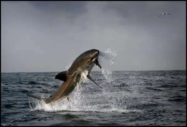 Большая белая акула прозвана хозяйкой океанских просторов, так как никто не может сравниться с ней по мощи атак среди других рыб и обитателей моря. Лишь крупная касатка наводит ужас на кархародона.