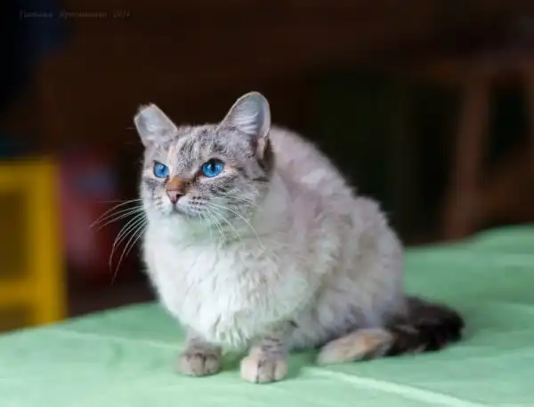 Леона - голубоглазая кошечка тайского окраса, на лбу небольшие розовые пятнышки. Ей примерно 2 года. Найдена на улице, одно ушко немного обморожено. Очень милое, тихое, скромное животное, в меру ласковое, ненавязчивое. Питается готовыми кормами, лоток знает. Стерилизована.