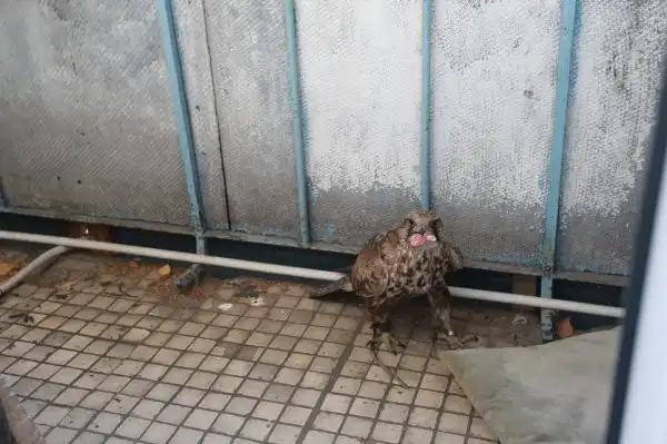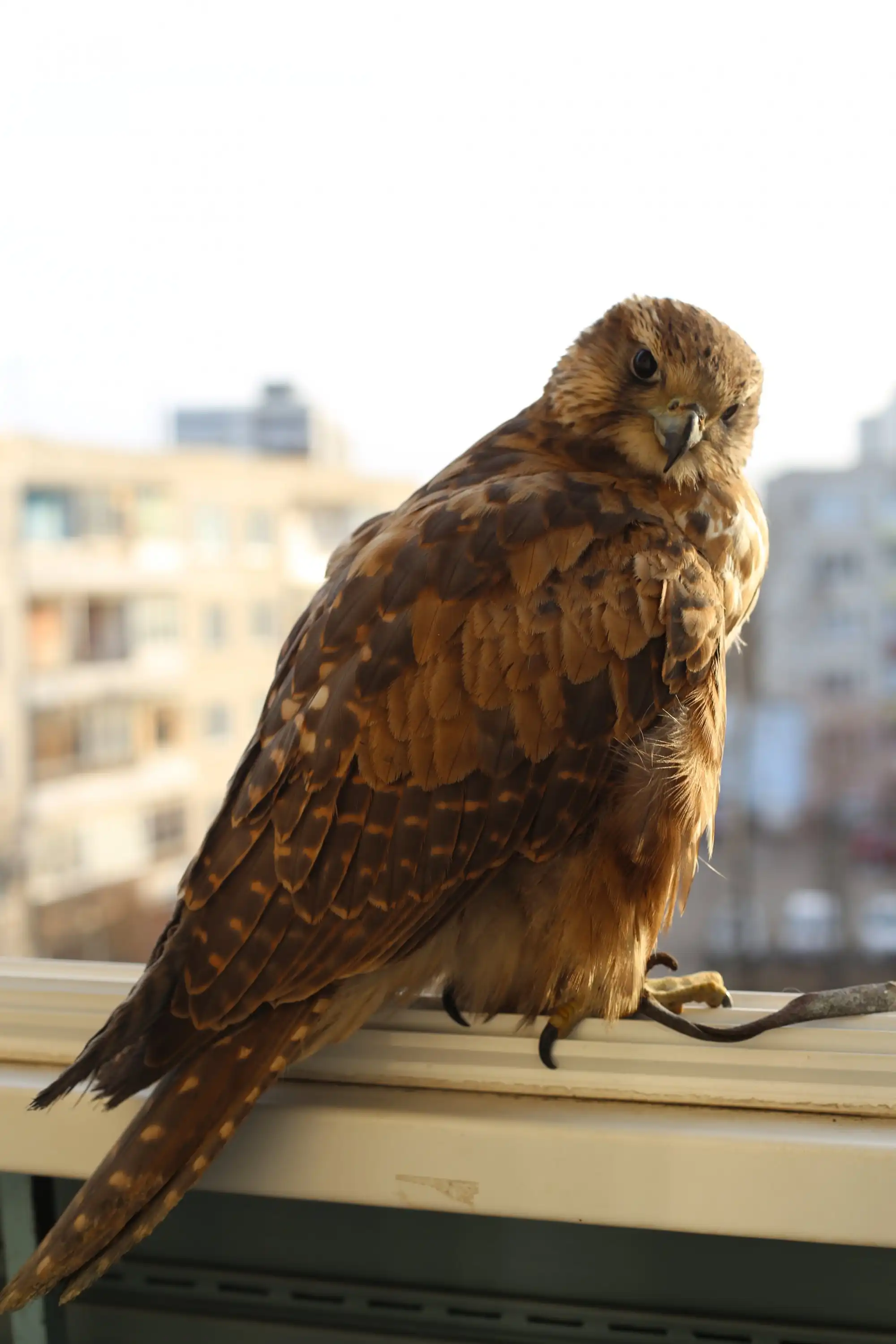 В подмосковном Ногинске утром 28 ноября произошел необычный случай. К моим друзьям на балкон прилетел самый настоящий Сокол! С кольцом на лапе, и с куском кожаной веревки на другой. Птица дружелюбная, людей не боится. Съела все мясо в доме) На данный момент мы активно ищем хозяина.