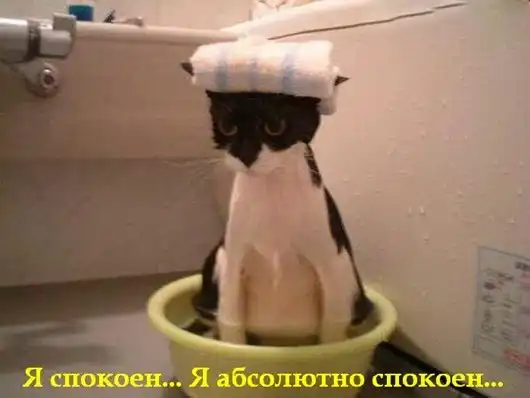 Заранее наберите в ванну или корыто 15-20 сантиметров воды. Если у вас нет корыта, наберите воду в три глубоких тазика: один для мытья, два для ополаскивания. Убедитесь, что вы можете дотянуться до полотенца, даже если вы лежите в ванне на спине. Используйте элемент внезапности. Возьмите кота, будто просто хотите почесать его за ухом. Он не должен обратить внимания на вашу странную одежду. Кошки слабо разбираются в моде, и, вообще не полагаются в своих выводах на внешний вид. Если же его обеспокоит ваш наряд, спокойно и ласково, избегая шипящих звуков, объясните ему, что это костюм огородного пугала для бал-маскарада.