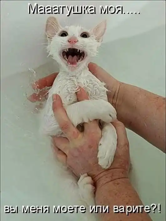 Не все владельцы пушистых питомцев знают, что в купание мало полезного, а стрессовая ситуация и коту и вам обеспечена. Коты с покладистым характером терпят, а «нравные» кусаются, шипят, кричат, даже могут травмироваться при вырывании, соответственно затаив злобу мстят.