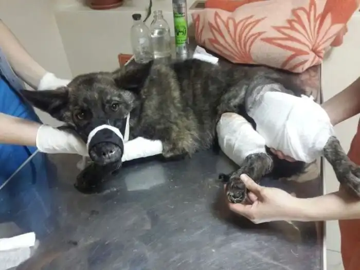 Пират уже отошел от наркоза и находится под присмотром. Есть ему пока нельзя, поэтому его только поят. Сейчас для пса ищут новых хозяев, кроме того ведется сбор средств на его реабилитацию.