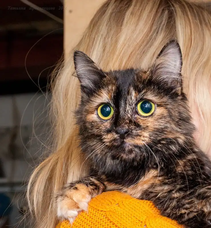Лаура - милая миниатюрная пушистая кошечка черепахового окраса, ей примерно 1 год. Очень ласковая, ручная, отлично уживается с другими животными. Найдена на улице. Питается готовыми кормами, лоток знает. Стерилизована.