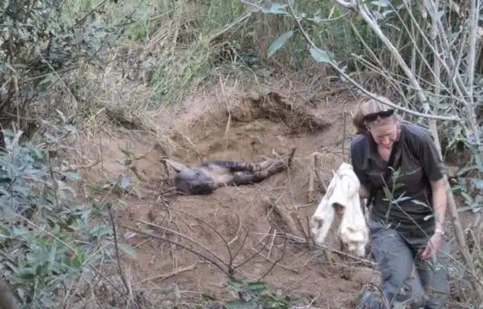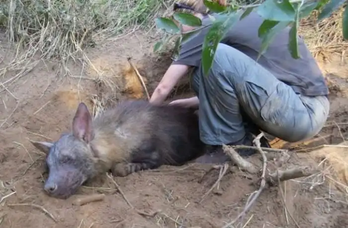 Неожиданную находку в Зимбабве сделали экологи, обнаружившие гиену, попавшую в капкан. Будучи в безвыходном положении, беременное животное сумело выкопать яму и родить в ней двух щенков. Мать и малыши выжили, а благодаря стараниям экологов они вернулись в естественную среду обитания.