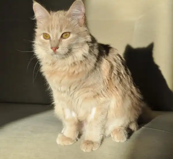 Пушистая красавица с янтарными глазами в поисках своего дома и любимых хозяев. Девочка ласковая, обожает играть с мячиками и шуршащими фантиками. По характеру спокойная, в меру любознательна. Кошечка стерилизована, по возрасту ей примерно 5 месяцев. Здорова. Кушает проф. корм, при желании можно перевести на натуралку. Лоточек знает на 5+