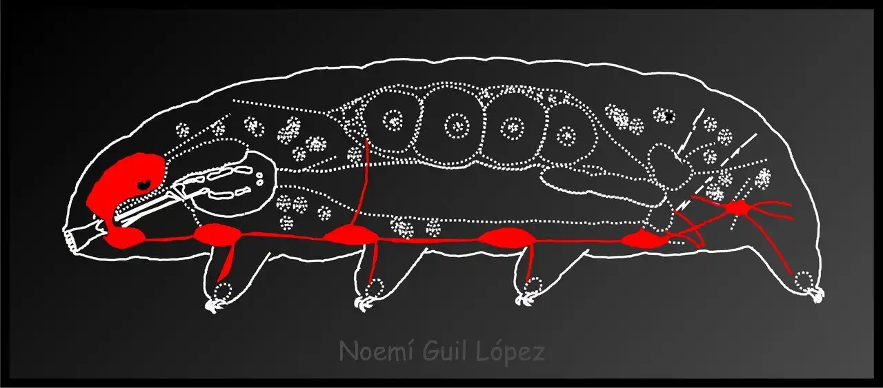 Одна гонада в виде мешка, расположенная дорсально, отличает самцов, самок и самооплодотворяемых гермафродитов. Некоторые виды состоят только из самок, размножающихся путем партеногенеза, то есть без участия самцов. Благодаря своим малым размерам, для газообмена тихоходкам не требуются дыхательная и кровеносная системы. Жидкость, присутствующая в полости тела, выполняет функции дыхательной и кровеносной систем. Систематически тихоходки весьма близки к членистоногим, в частности, к ракообразным и насекомым, которые также теряют свою кутикулу в процессе роста и насчитывают наибольшее число видов на Земле. Будучи весьма близкими к членистоногим, тихоходки не являются ими. Различные виды тихоходок были обнаружены повсеместно на планете: от полярных областей до экватора, от прибрежных зон1 до глубин океана и даже на вершинах гор. На сегодняшний день описано примерно 1 100 видов тихоходок, которые живут в морях, озерах и реках или в наземной среде обитания. Их количество быстро увеличивается с каждым годом в связи с новыми открытиями и пересмотром существующих видов.