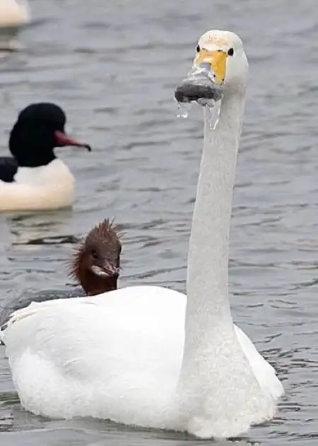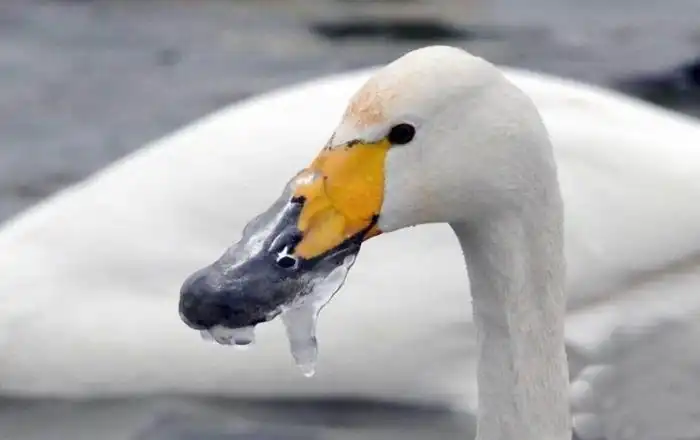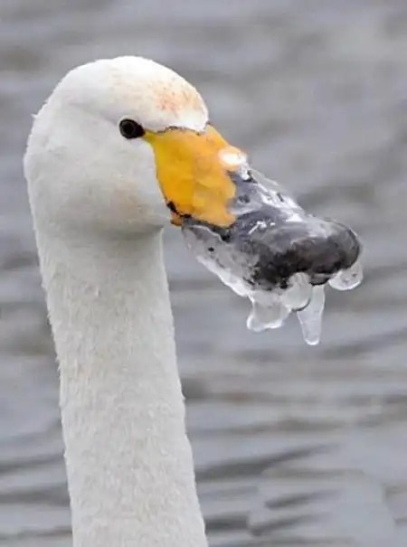 Немало животных ежегодно страдает от морозов, не исключением стал и этот невезучий лебедь, который решил напиться воды в морозный день, но не знал о последствиях. Фото было сделано в пруду китайского города Корла 4 февраля при температуре воздуха -7 градусов.