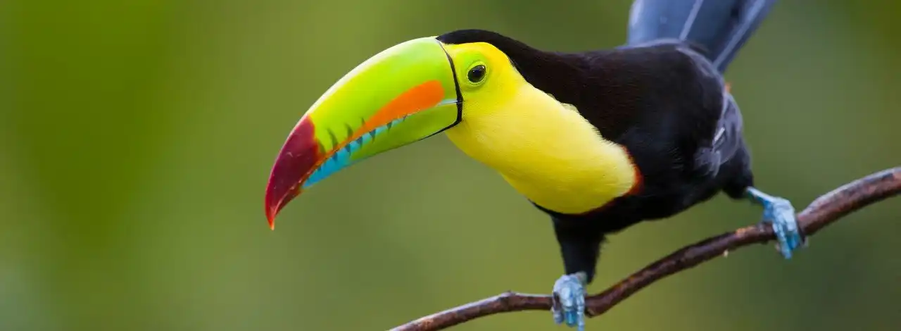 Тукан же неплохо приспосабливается к жизни в неволе и отличается добрым нравом. Он хорошо приручается и Вы можете быть уверены – птица никогда не нападет на хозяина, не попытается клюнуть человека своим массивным клювом. По характеру туканы подобны какаду.