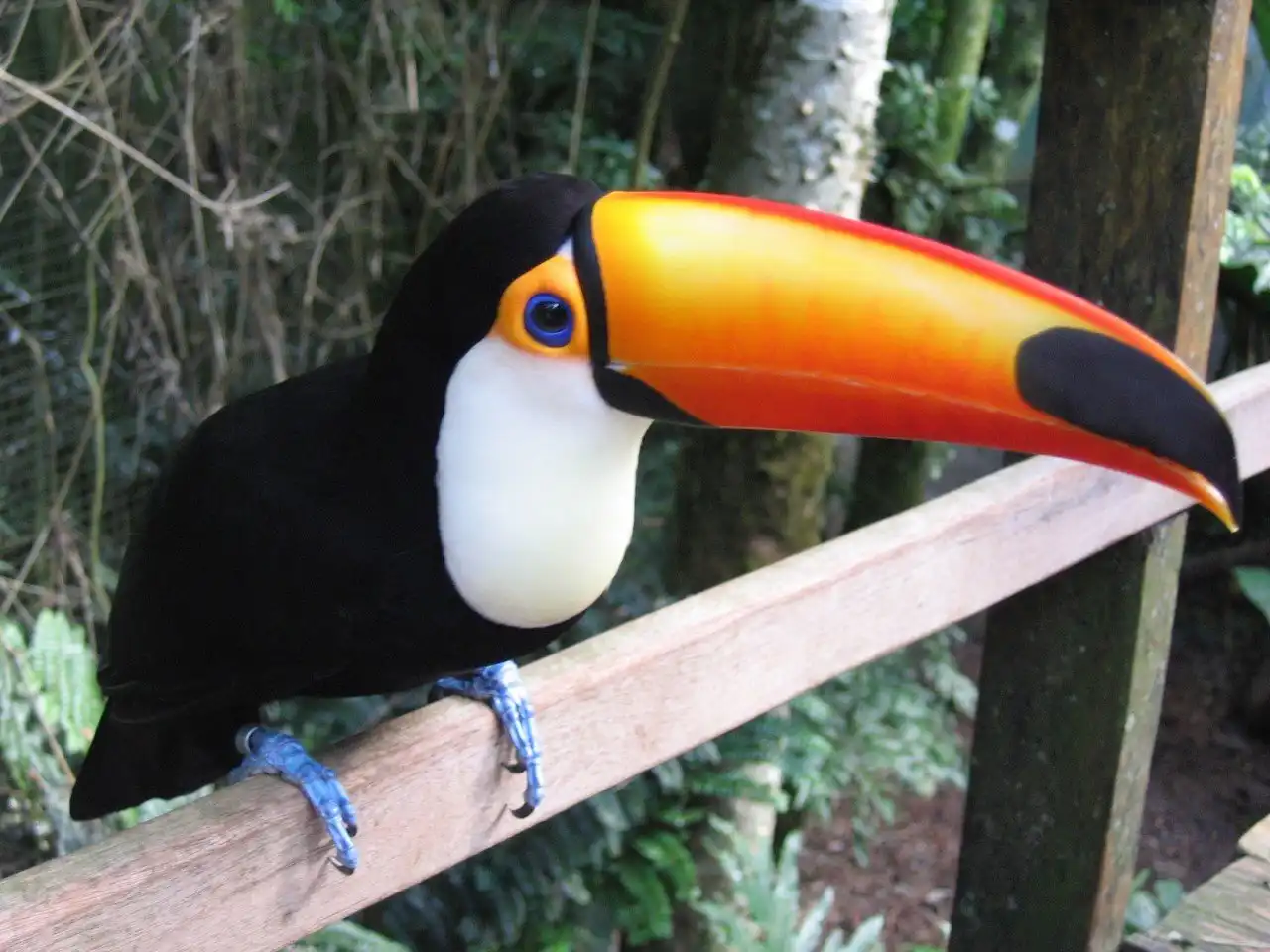 Чего не скажешь о населении остальной части планеты – где бы большой тукан не появлялся, он всегда окружен повышенным вниманием. Один только клюв чего стоит! Уж что-что, а клюв токо сложно не заметить: ярко-оранжевый с черным пятном на конце и красной частью сверху, он просто поражает своими огромными размерами – целых 20 см при длине тела птицы от 55 до 65 см. Кажется, что такую тяжесть очень сложно носить. На самом деле клюв внутри полый: он состоит из большого количества воздушных камер, которые разделены между собой тоненькими костными перегородками.