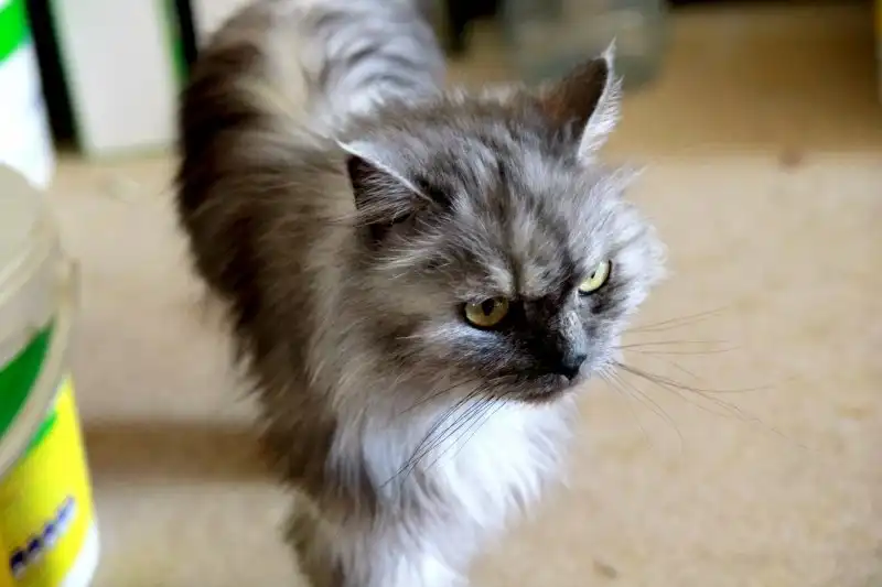 Симон - крупный красивый кот окраса "соль с перцем", длинношерстный, похож на персидского. Возраст примерно 2 года. Найден на улице. Кот с характером, он не всем позволяет себя любить. Не переносит соседства других животных, отдается единственным питомцем в дом. Кот еще худоват, нуждается в откорме. Сейчас выглядит не совсем презентабельно, так как на животе и на боках ему вырезаны колтуны (найден сильно закатанным), но при хорошем уходе за шерстью обещает стать неотразимым красавчиком. Питается готовыми кормами, пользуется лотком. Кастрирован.