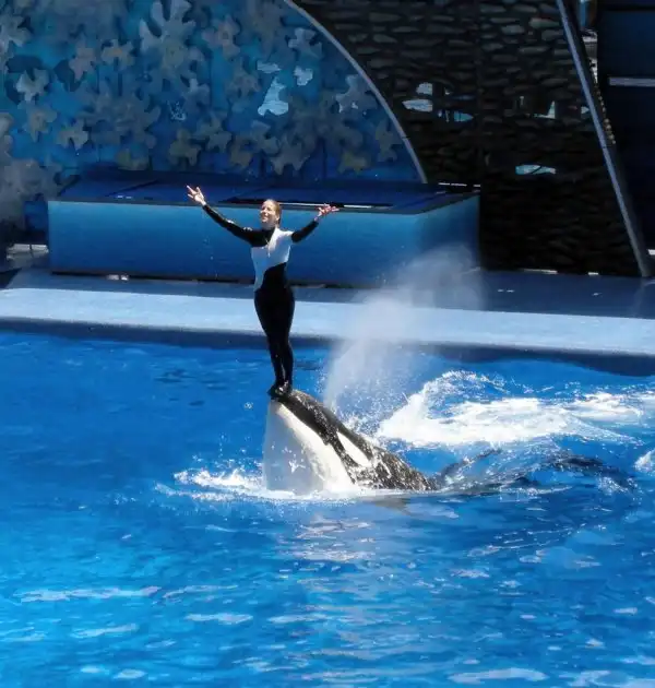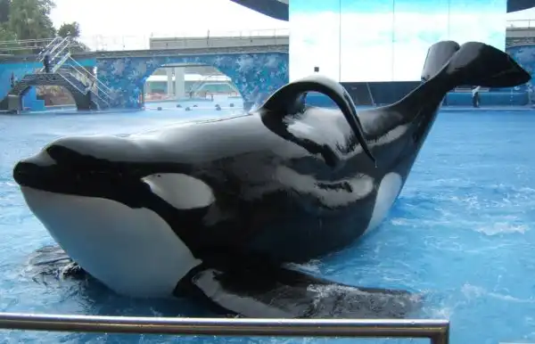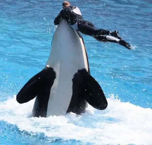 Теперь уже известно более дюжины случаев содержания косаток в загонах и океанариумах США и Канады. В круглом бассейне Сан-Диего и в других городах Америки публике показывают обученных косаток: они во весь свой рост прыгают в воздух, играют и подкидывают высоко мяч, стремительно возят на спине дрессировщика, открывают пасть, в которую кладет свою голову человек; в загонах эти хищники хорошо уживаются с другими видами дельфинов.