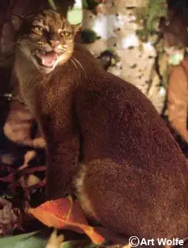 Сегодня у нас для изучения Кошка залива или Калимантанская кошка – таинственное дикое животное, встречающееся только на острове Борнео. Тропическим лесам, где обитают эти кошки, угрожает вырубка, поэтому звери попали в ряд исчезающих видов по классификации Международного союза охраны природы. Это одна из всего нескольких существующих в мире фотографий кошки залива Борнео.
