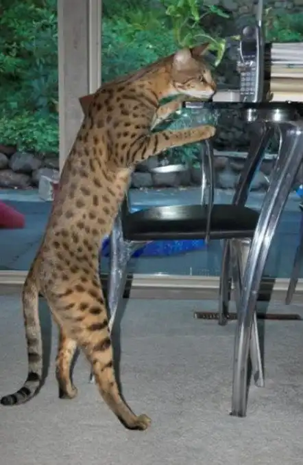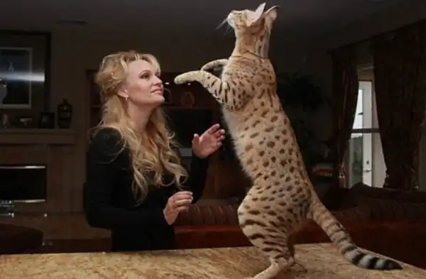 Это звание принадлежит одной из самой редких пород домашних кошек Ашера, которыя славятся своими гигантскими размерами - некоторые особи достигают высоты более одного метра при весе 15 килограммов! Помимо исполинских размеров, Ашера известна своей немалой ценой - за котенка нужно отдать порядка 25000 долларов США! Ныне эта порода пользуется большим спросом на территории Америки, Азии, Европы и России.