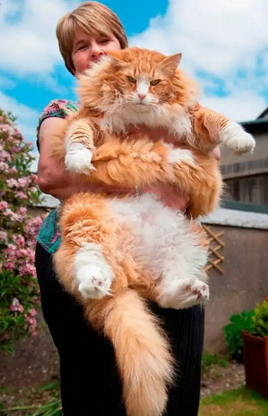 Кот ниже, по кличке Руперт (Rupert), пушистый гигант среди домашних кошек и это еще при том, что он продолжает расти. Он в три раза больше средней кошки и весит почти 9 кг. С такими данными он может претендовать на почетное звание самого крупного домашнего кота в мире.