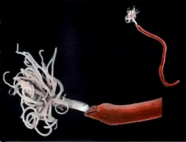 Так что же это выходит из него? На самом деле это хоботок, являющийся мышечной структурой, скрывающейся внутри червя. Этот хоботок черви используют, чтобы охотиться на добычу. У некоторых черве он даже ядовитый