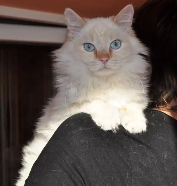 Встретив на улице это кошачье чудо, у меня невольно возник вопрос, "ну а тебя-то за что лишили дома?" Знакомьтесь-это идеально-интеллектуальный кот с золотым характером, голубыми глазами и добрым нравом, а так как недостатков у него нет (лишь маленькая слабость вкусно поесть), то буду описывать его достоинства. Он достаточно ласков, мил и общителен. Он хорошо улавливает настроение хозяина, не любит оставаться в одиночестве, если вы захотели посмотреть TV, прекрасно, он тут же устроится у вас на коленях, обожает, когда его гладят. Вы решили навести уборку в квартире, отлично, он Ваш первый друг и помощник. Он любознателен и ему всё интересно. Он хорошо ладит с другими котами и кошками, абсолютно не конфликтен, любит поиграть, побегать, пообщаться. Осмотрен ветеринаром, здоров, кастрирован. Возраст примерно 1,5 года. Кушает как проф корм, так и натуралку, но натуралку любит больше. Идеально знает лоток на 5+ К цветам равнодушен.
