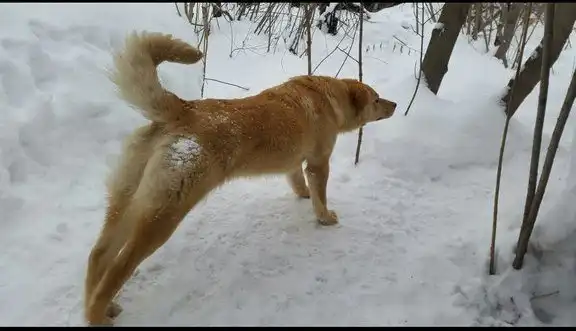 Мальчик очень похож на лайку, ярко-рыжего окраса, ласковый, очень умненький!
