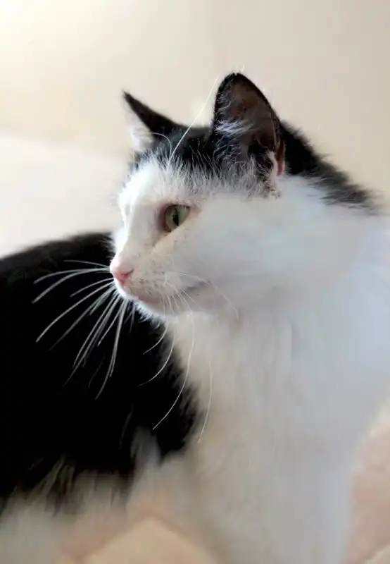 Квентин - черно-белый длинношерстный котик небольших размеров, возраст примерно 2 года. Найден на улице.. Очень ласковый, любит внимание, может долго лежать на коленях и мурлыкать. Добрый, милый, хорошо уживется с другими кошачьими. Питается готовыми кормами, пользуется лотком. Кастрирован.
