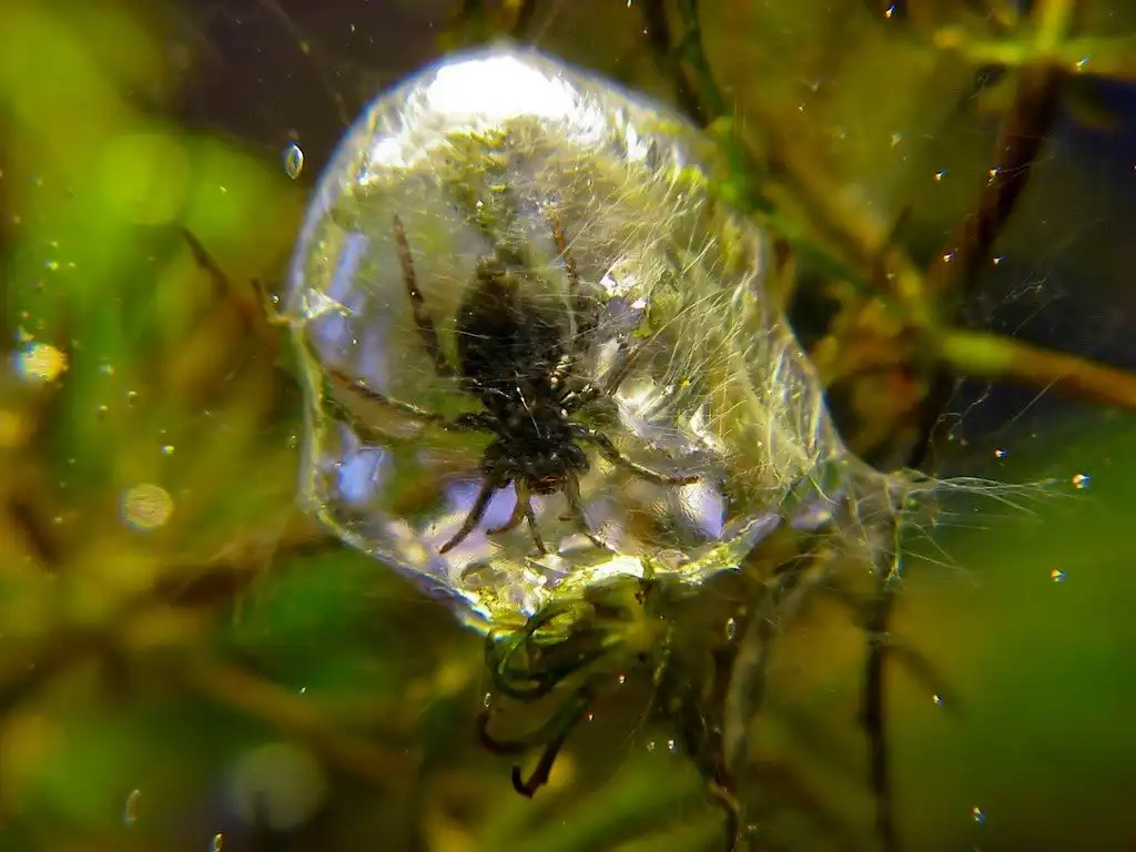 Для того чтобы дышать, водяные пауки сооружают гнезда из паутины, визуально напоминающие купола — в этих гнездах они и хранят воздушный запас, а для его пополнения выплывают на поверхность и оттуда переносят пузырьки воздуха на собственных волосках, растущих на брюшке и лапках.