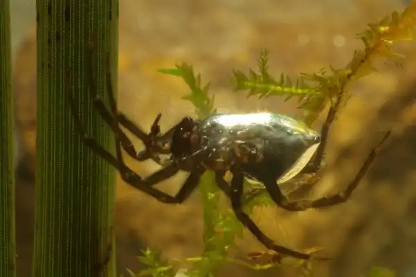 Пауки-серебрянки хорошо адаптируются в условиях аквариума. Их можно содержать в любых сосудах — и в стеклянных банках (по одному экземпляру), и в больших емкостях (несколько взрослых особей). При этом обязательно присутствие водных растений, среди которых пауки строят свое жилище.