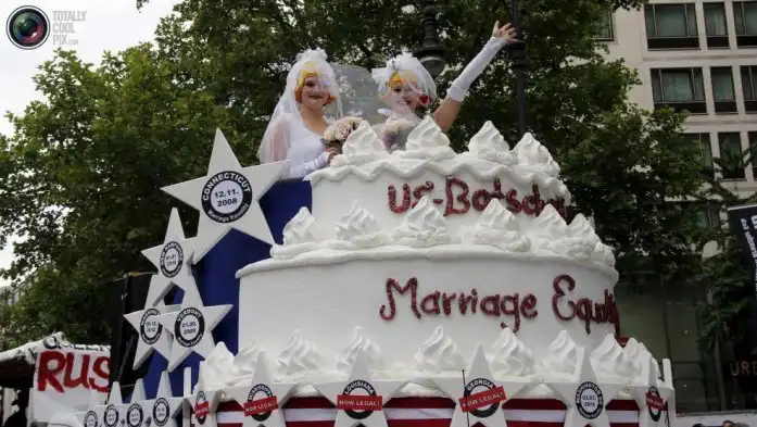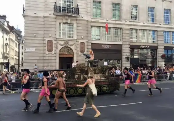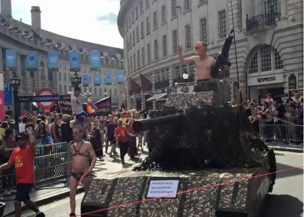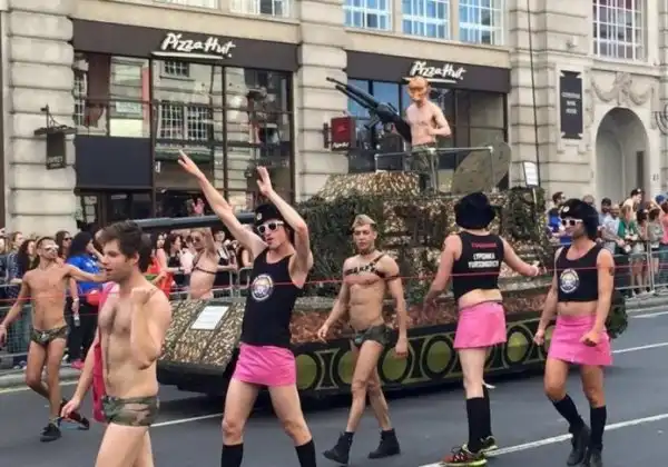 26 июня в США вступил в силу закон, и теперь на территории всей страны (США) разрешено заключать однополые браки. Это сподвигло представителей ЛГБТ-сообщества устроить красочные шествия по всему миру. Самое яркое, запоминающиеся и провокационное шоу устроили англичане. Кстати, это шествие меньшинств возглавил Путин на танке с флагом СССР в одной руке и фаллоимитатором - в другой.