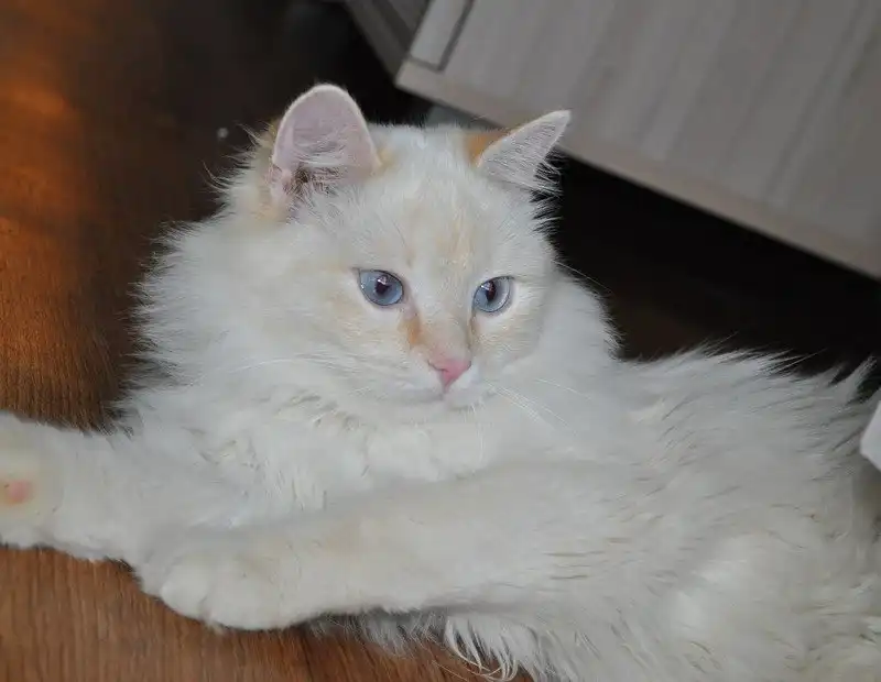 Знакомьтесь-это идеально-интеллектуальный кот с золотым характером, голубыми глазами и добрым нравом, а так как недостатков у него нет (лишь маленькая слабость вкусно поесть), то буду описывать его достоинства. Он достаточно ласков, мил и общителен. Он хорошо улавливает настроение хозяина, не любит оставаться в одиночестве, если вы захотели посмотреть TV, прекрасно, он тут же устроится у вас на коленях, обожает, когда его гладят. Вы решили навести уборку в квартире, отлично, он Ваш первый друг и помощник. Он любознателен и ему всё интересно. Он хорошо ладит с другими котами и кошками, абсолютно не конфликтен, любит поиграть, побегать, пообщаться. Осмотрен ветеринаром, здоров, кастрирован. Возраст примерно 1,5 года. Кушает как проф корм, так и натуралку, но натуралку любит больше. Идеально знает лоток на 5+ К цветам равнодушен.