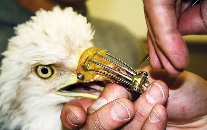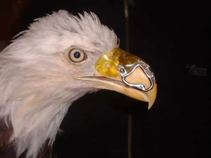 В канадском селении Тофино, что находится в Британской Колумбии, местные жители обнаружили раненного орла. Хищнику отстрелили большую часть верхней половины клюва, от которого остался лишь кончик, прикрепленный к черепу тонким хрящом. Птицу привезли в Эррингтон, в центр дикой природы. Большинство ветеринаров не знали, как помочь птице, и тогда за дело взялся дантист Брайан Эндрюс, решивший изготовить специальный протез.