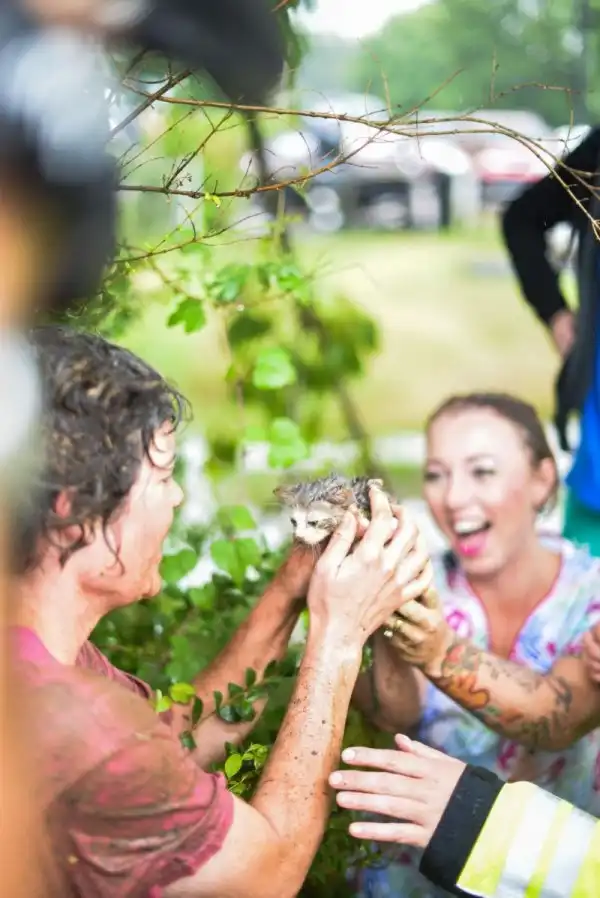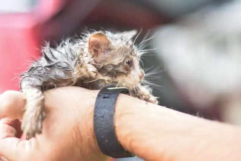 Храбрая спасательница нырнула в сливную трубу ради спасения котенка