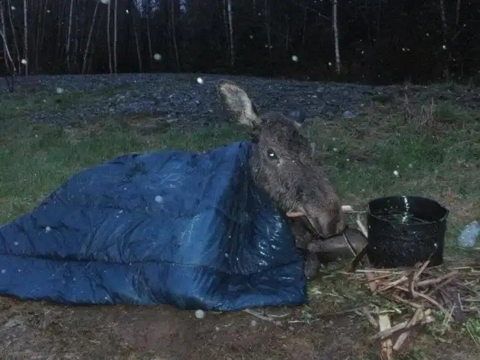 Один парень решил поделиться небольшим фотоотчетом о спасении молодого годовалого лося, который попал в беду, но был вовремя обнаружен. Эта история случилась еще весной, однако, о ней стало известно только сейчас.