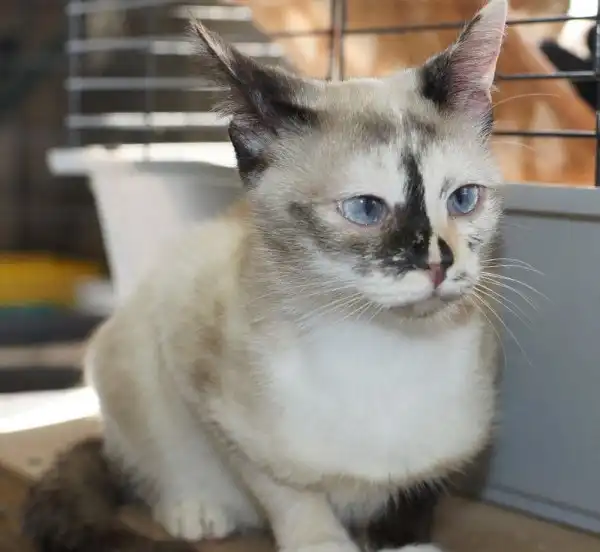 Мозаика - милая миниатюрная кошечка, помесь с пойнтовыми, расположение темных пятнышек совершенно невероятное. Возраст кошечки 1,5-2 года. Доброе, ласковое животное, немного побаивается новых знакомых. Отлично ладит с другими кошачьими. Питается готовыми кормами, пользуется лотком. Стерилизована.