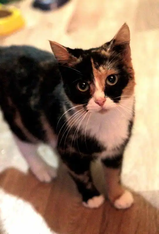 Матильда - кошечка черепахового окраса, очень яркая и красивая. Возраст примерно 1 год. Найдена на улице. Веселая, игривая малышка, любит кошачью компанию, не отказывается от ласки и внимания человека. Питается готовыми кормами, пользуется лотком. Стерилизована.