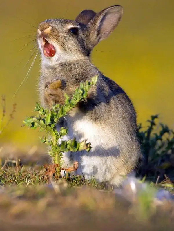 Голодный кролик решил съесть чертополох, и был шокирован неприятным сюрпризом
