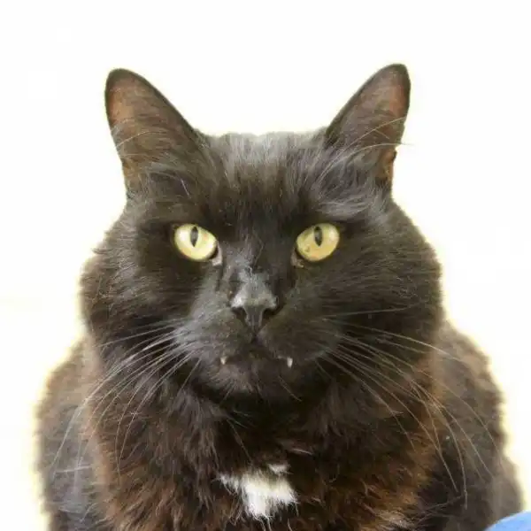 Этому коту из Великобритании не очень повезло со внешностью. Его черный цвет шерсти дополняют два торчащих клыка как у вампира. Этот кот жил в приюте с нетерпением ждал своих новых хозяев.