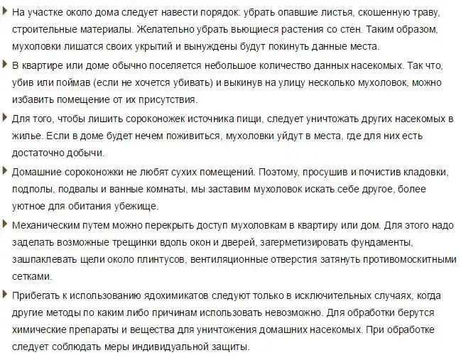Мухоловка обыкновенная, она же сороконожка домашняя, часто заводится в частных домах и коттеджах, встречается и в квартирах. Из-за значительных размеров, отталкивающего внешнего вида и большой скорости передвижения это насекомое, внезапно появившиеся в доме, часто внушает ужас жильцам. Но домашняя сороконожка – насекомое достаточно мирное.