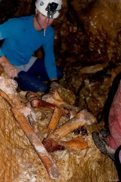 огромную и хорошо сохранившуюся лапу моа в одной из пещер