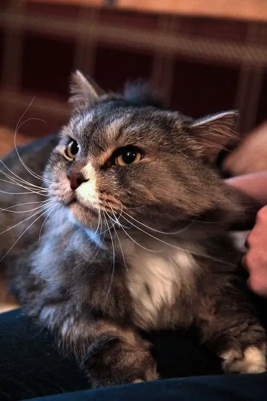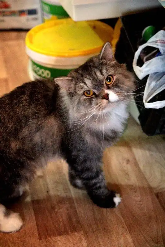 Казимир - длинношерстный кот гигантских размеров, серо-голубой табби, возраст примерно 2 года. От кота отказались хозяева в связи с отъездом, с их слов помесь британца и персидской кошки. Кот дружелюбен с людьми и другими кошачьими, но иногда проявляет свой британский характер, если у него нет настроения, сопротивляется играм и ласке. Очень эффектный, необычной внешности. К нам приехал закатанный, была произведена гигиеническая стрижка, сейчас кот в процессе обрастания, то есть сейчас он еще не во всей красе. В дальнейшем ему понадобится от хозяев тщательный уход за шерстью. Кот питается готовыми кормами, пользуется лотком. Кастрирован.