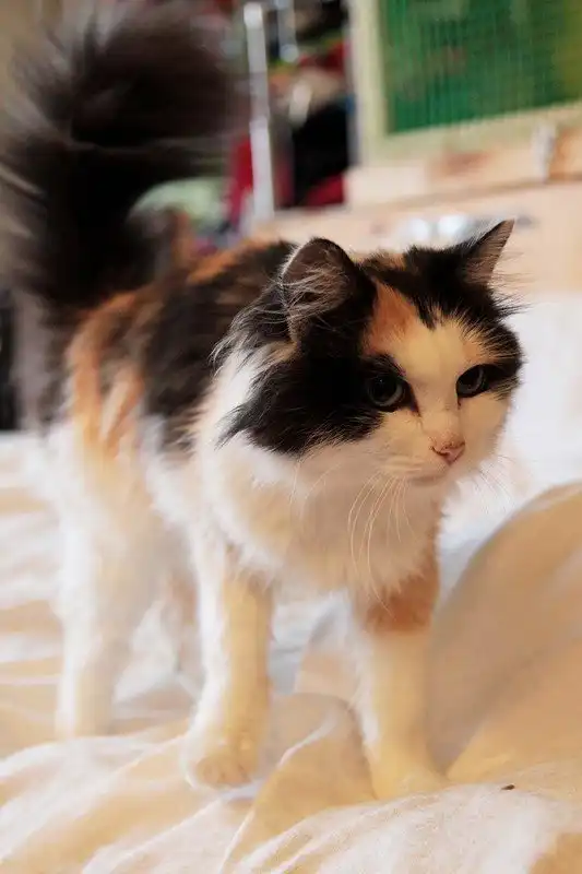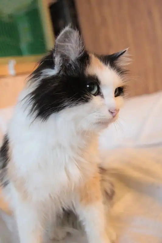 Хризантема - кошачья принцесса черепахового окраса, очень яркая, пушистая, с ярко-бирюзовыми глазами. Возраст кошечки примерно 1-1,5 года. Найдена на улице. Очень ласковое, доброе, мурчащее создание, любит людей и внимание к себе, отлично ладит с другими кошачьими. Еще немного худовата, нуждается в хорошем питании. Питается готовыми кормами, пользуется лотком. Стерилизована.