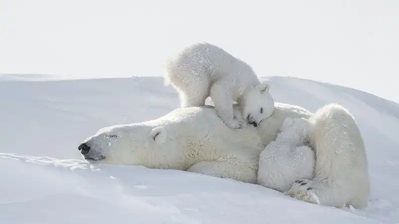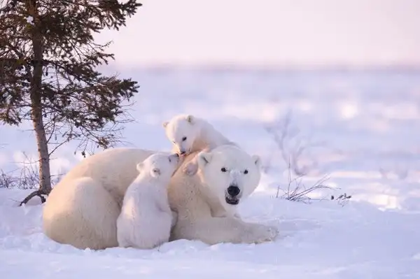 С середины февраля до середины марта в канадском национальном парке Вапуск случается грандиозное событие. Каждый год в Манитобе в этот период выходят из своих берлог полярные медведицы. В октябре они уходят в укрытие, чтобы в ноябре произвести потомство. А в феврале-марте мамы впервые выходят с четырёхмесячными детёнышами.