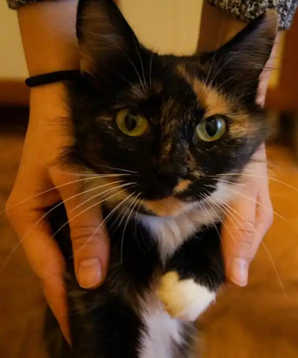 Она очень ласковая кошка, любитель валяния в кровати и почесушек, с удовольствием сидит на руках и распевает песни.