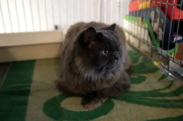 Маркиз - кот голубого окраса гигантских размеров, похож на персидского. Сейчас подстрижен. Возраст 3 года. От кота отказались хозяева из-за аллергии. Сейчас кот живет в клетке в приюте, и ему здесь очень неуютно. Кот спокойный, доброжелательный, благосклонно реагирует на ласку. Такое ощущение, что он понимает, что его предали. Котик очень нуждается в добрых, любящих хозяевах. Очень красивый, эффектный кот, умеющий любить. Питается вискасом, сейчас пытаемся его перевести на более качественный корм. Кастрирован.