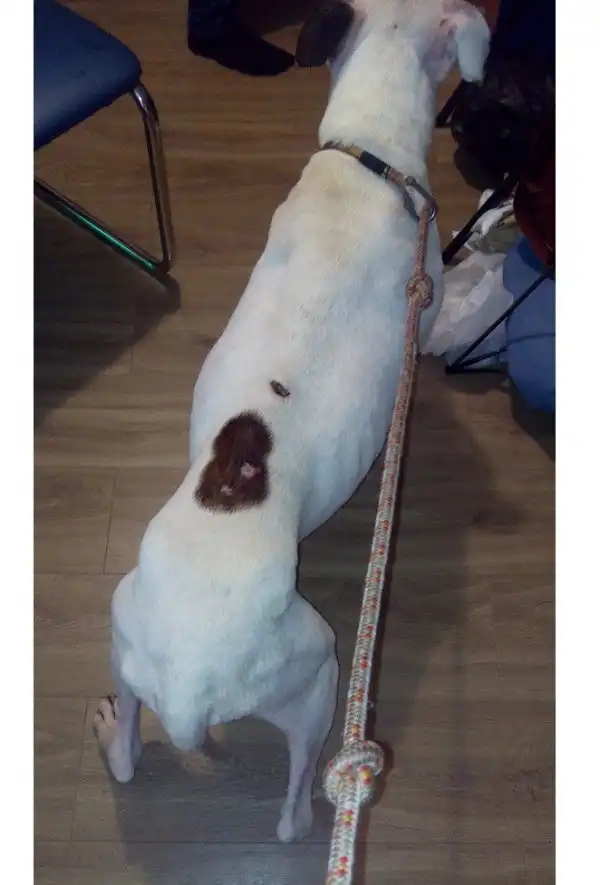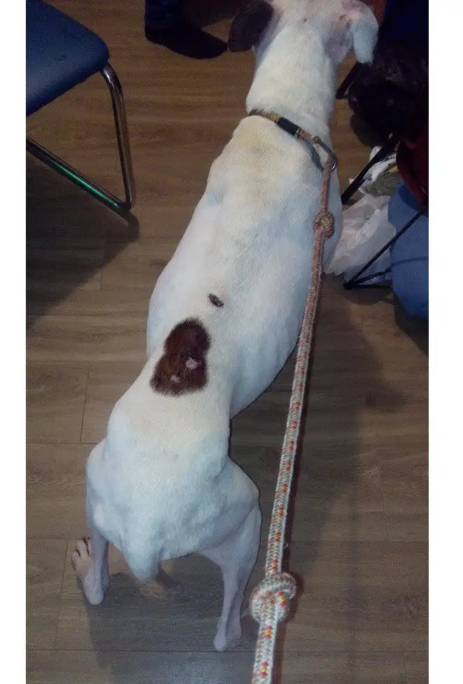 Приезжает, смотрю бульдог, кобель, худой как спортивный велосипед, видно, что уже пожилой. На спине ссадины, морда без шрамов, значит не бойцовый, просто кто-то из двуногих тварей бил его. На пузе клеймо.