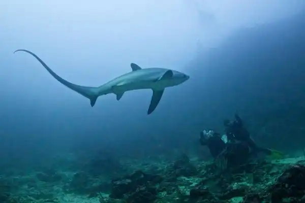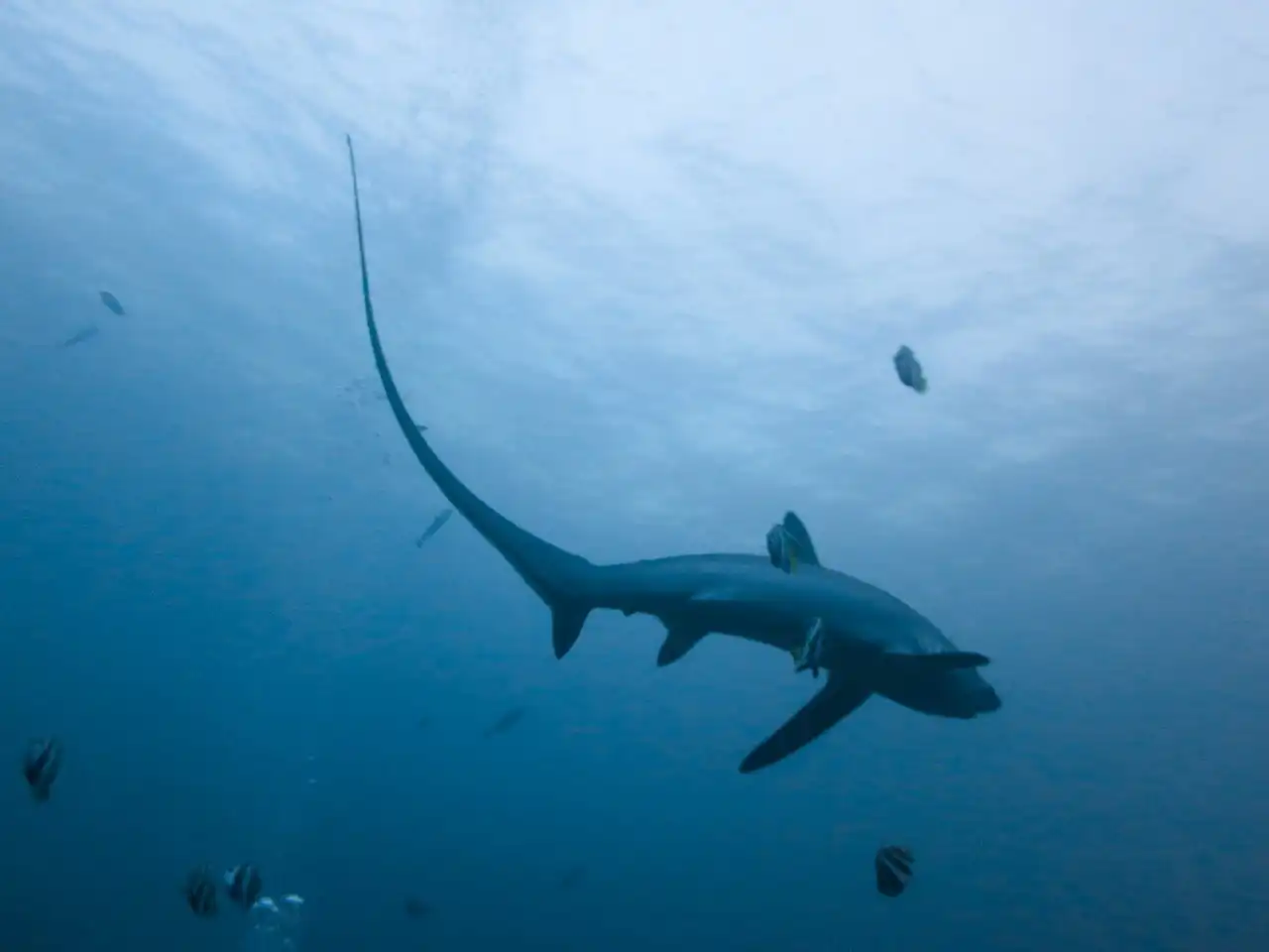 Лисья акула, или морская лисица - уникальный представитель среди акульего сообщества. Это единственная акула, которая использует для охоты на добычу необычное оружие - собственный хвост.