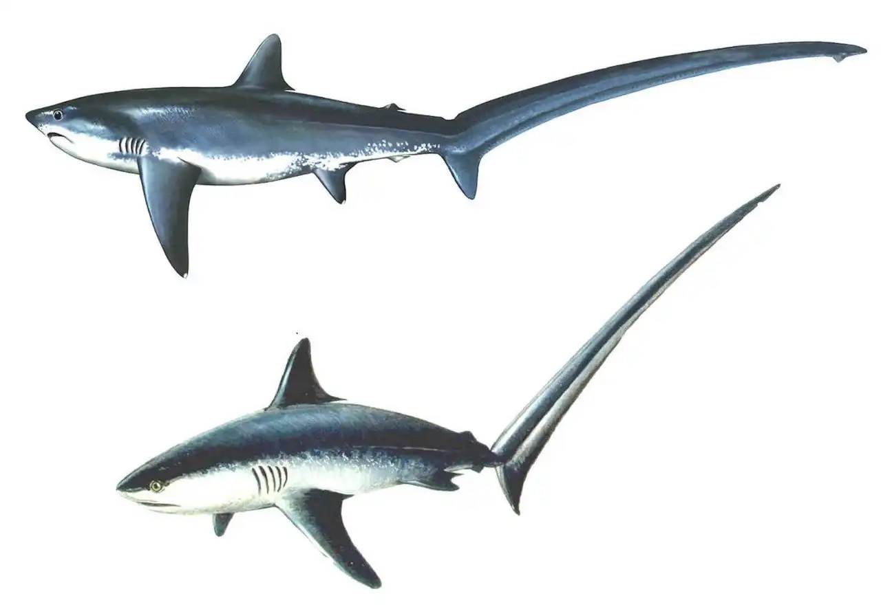 Лисьи акулы, акулы-лисицы, акулы-молотилки, thresher shark. Эти морские хищницы отличаются от других видов акул необычно длинной верхней лопастью хвостового плавника. Когда и зачем Природа-матушка наградила предков лисьих акул таким странным инструментом, достоверно неизвестно, а современные акулы-лисицы с успехом используют свой хвост для эффективной охоты на добычу - некрупную стайную рыбу.