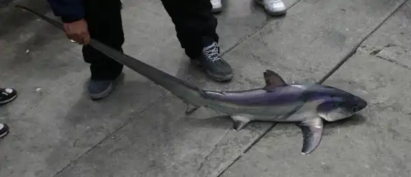 Английское название лисьей акулы - thresher shark, переводится, как акула-молотилка, которое получила именно за уникальный способ охоты.
