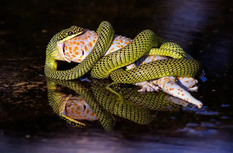 Куда более интересно разнообразие их вкусовых предпочтений. Оказывается, голодный леопард может в прямом смысле слова съесть слона. Может и не слона, но слоненка точно. А некормленый пеликан не задумываясь проглотит голубя. Змеи вообще непривередливые: им и рыба, и птица, и лягушки, и парнокопытные — все годится! Леопарды, кстати, не только млекопитающими интересуются, при случае они могут и змею употребить, хотя вряд ли эту пищу кто-то назовет их любимой.